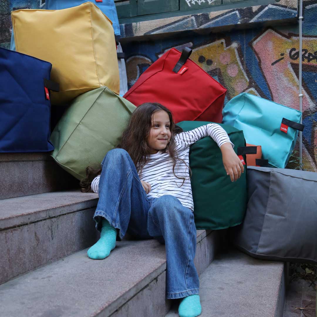 Finding sustainable seating in the right size for your space is challenging. The Drum Beanbag solves this with handcrafted Lebanese construction from reclaimed boat cover acrylic. Available in three widths (42cm, 52cm, 62cm) with uniform 42cm height. The result is eco-conscious comfort tailored to your specific spatial requirements.