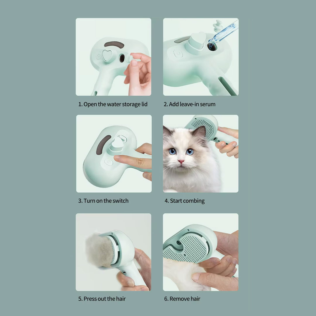 Transform matted fur into silky coats without baths! This 3-in-1 USB rechargeable miracle combines warm steam, gentle massage, and detangling power. Safe for sensitive skin, eco-friendly ABS build, and purr-fect for cats/dogs. Turn grooming battles into bonding moments!