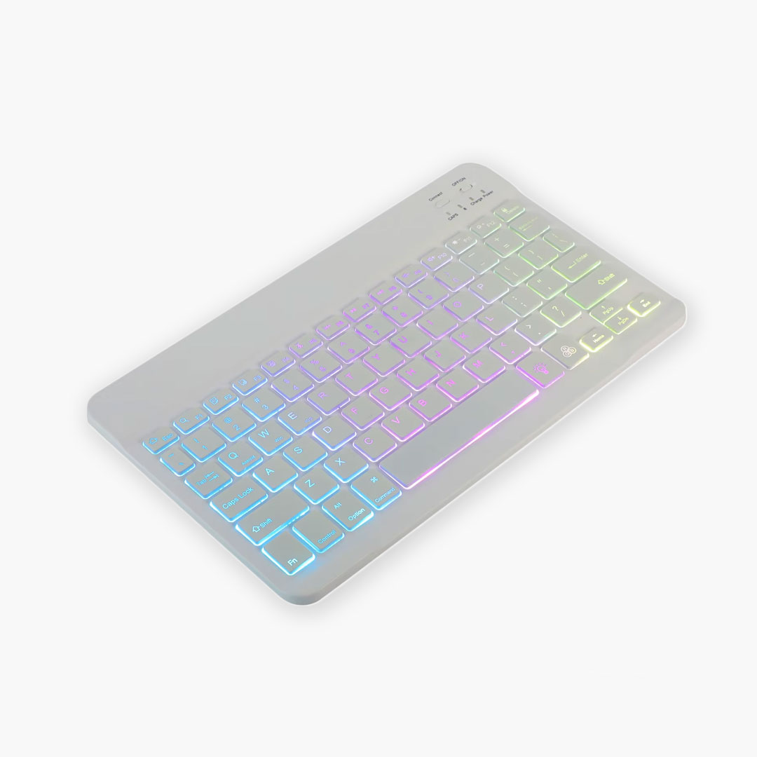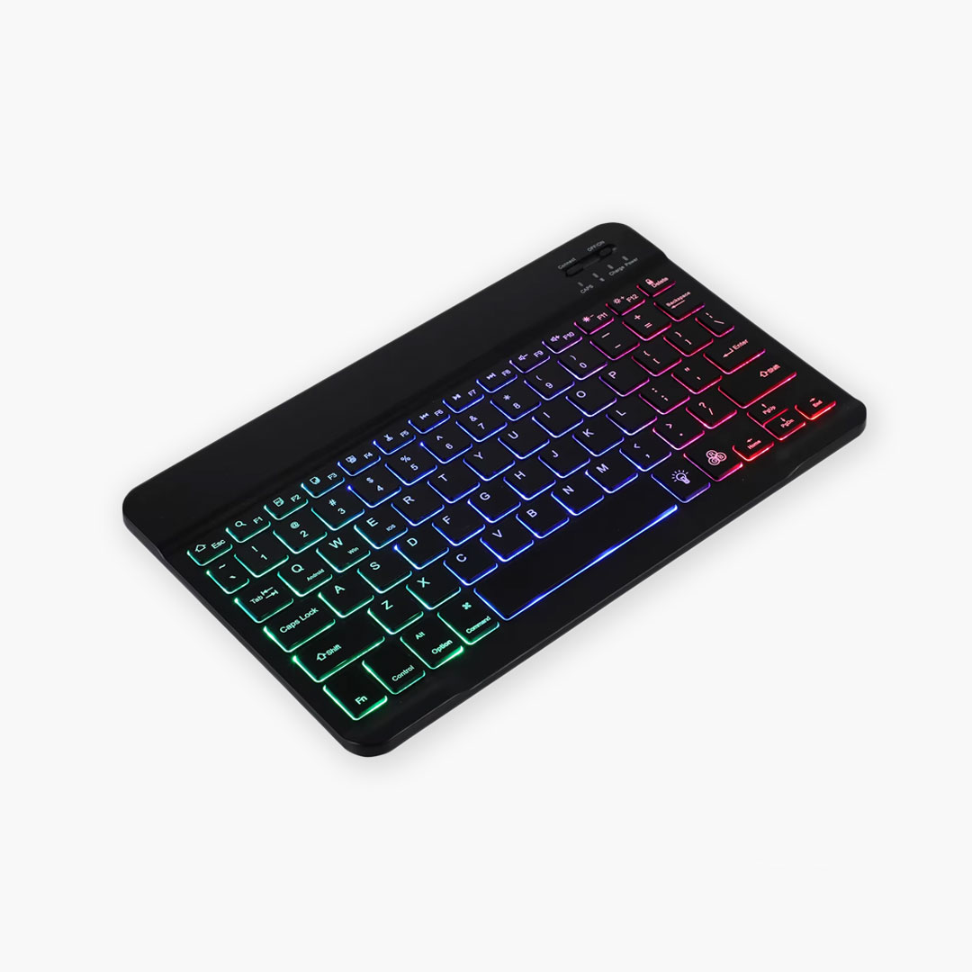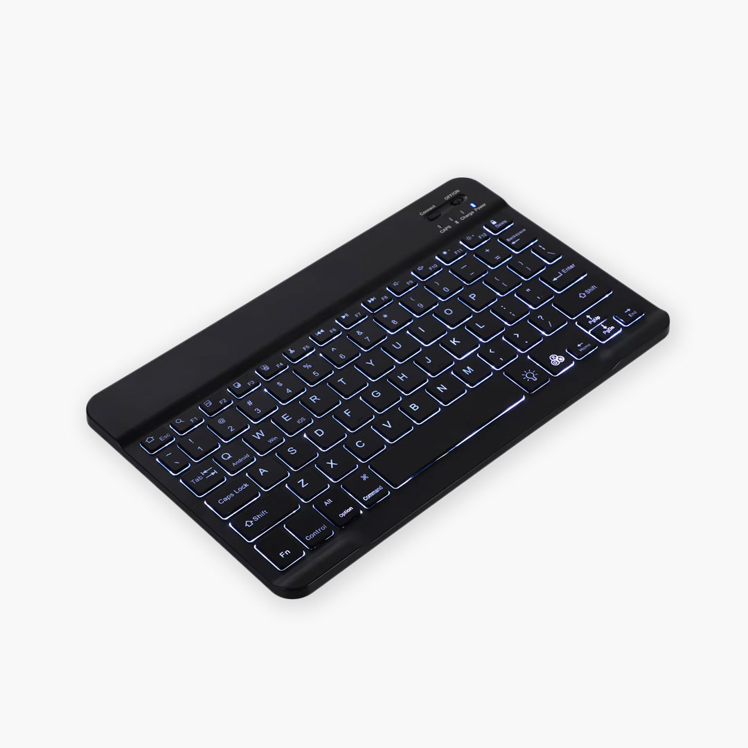 Credit-card thin profile slips into laptop sleeves effortlessly. LED-backlit keys shine through darkness (3 brightness levels). Perfect for dim cafes or flights.
